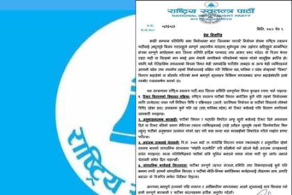 राष्ट्रिय स्वतन्त्र पार्टी बाराद्वारा टिकट वितरणबारे स्पष्टिकरण, अफवाहमा नपर्न आग्रह